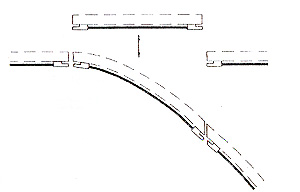 1)若道岔中喇叭段與道岔平移方向成一定角度時,應將其中一個喇叭段切割成與道岔平移方向一致的角度;
